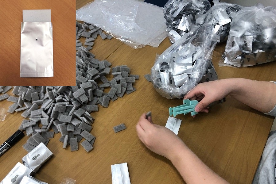 その中にスポンジを詰める作業。