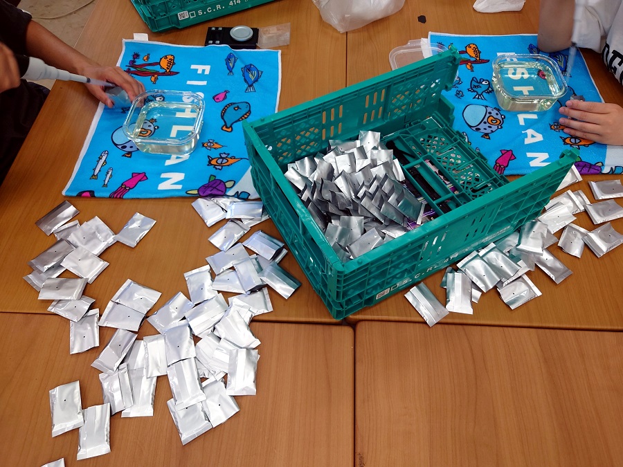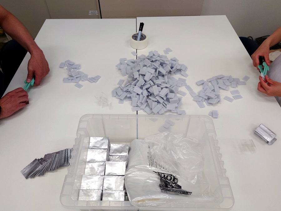 作業で手にするものは小さく、スポンジも正確に入れなければいけない、香料の量も決まっているので、今日もただひたすらに黙々とみんな作業をしています😊