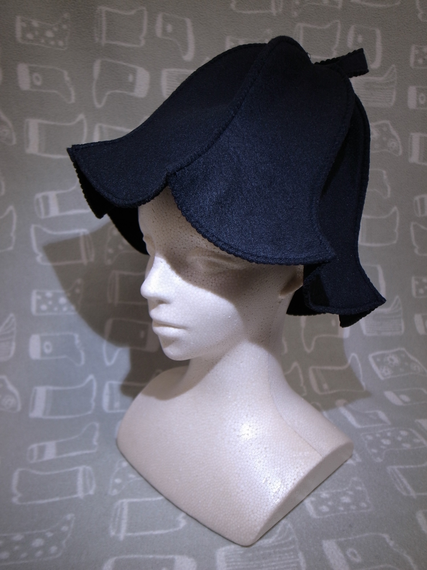 フェルトを縫い合わせたサウナハット。