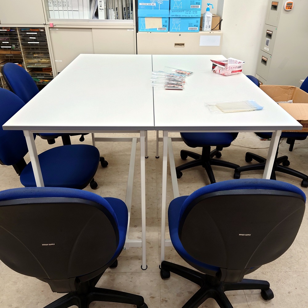 今まで使ってたいた机がまったくなくなったわけではありませんが、立って作業が必要な時、机が低くて大変だったのが解消されそうです。