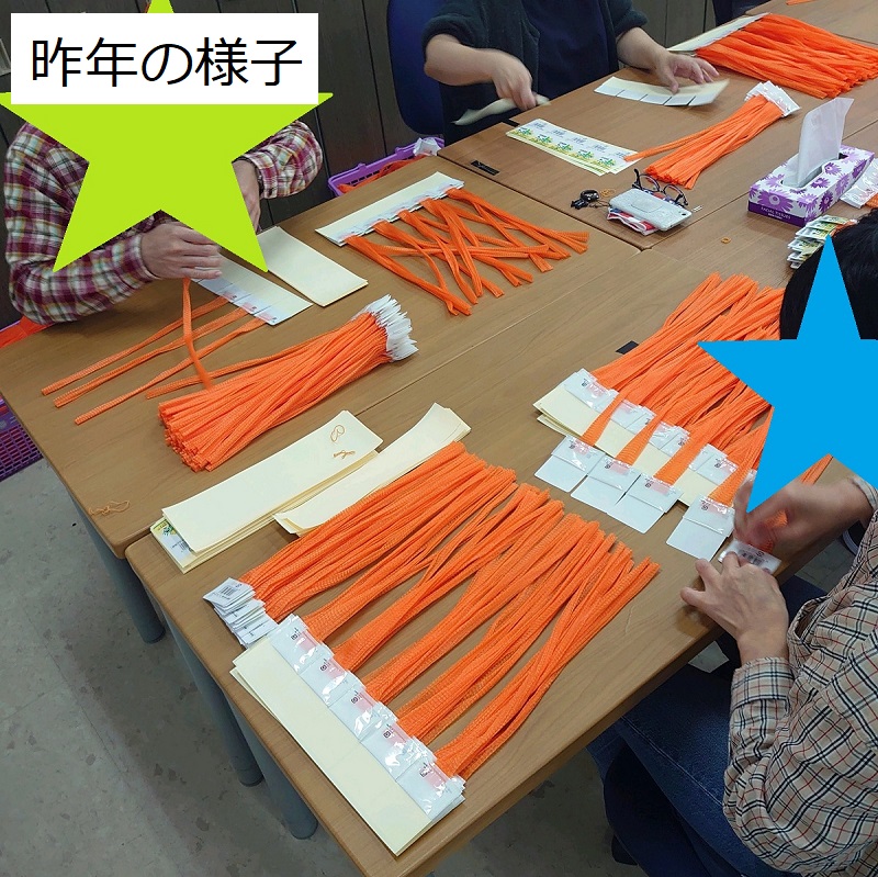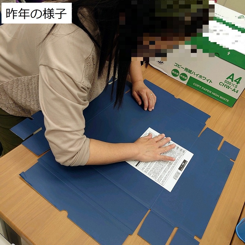 作業はこれだけではなく、玉ねぎのシール貼りや宛名書きも同時進行中。