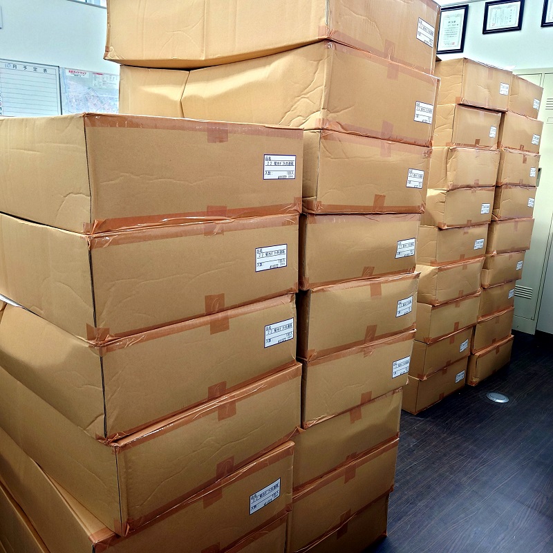 箱はここに積みきれず、他の場所にも山のように置かれています。
