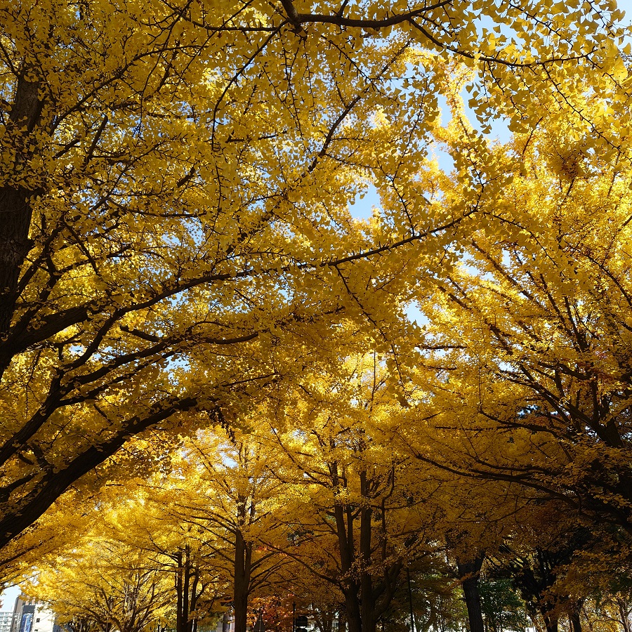 北13条門を入った通りは、イチョウ並木となっていて、今ちょうど、キレイなイチョウ並木を見ることができます。