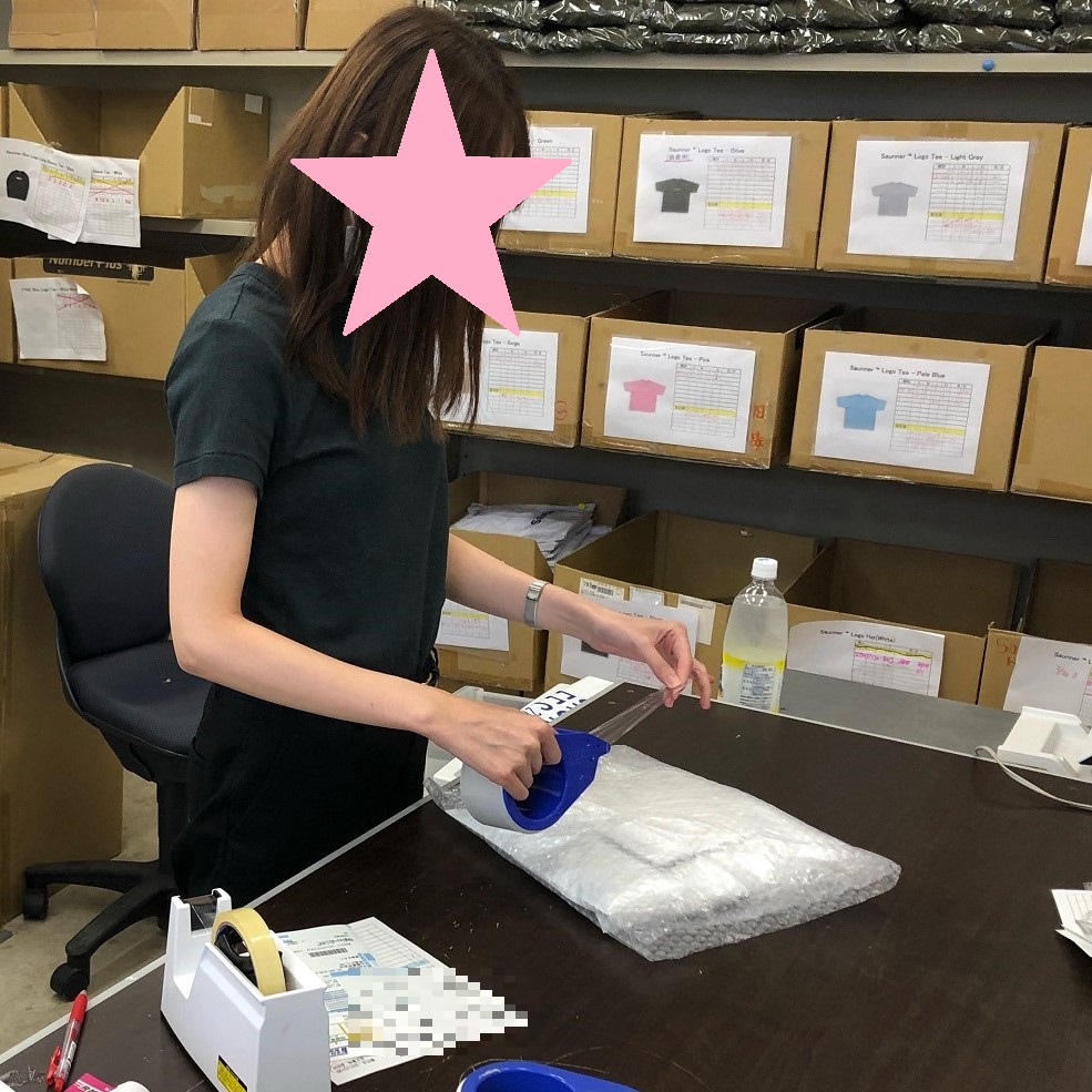 商品の梱包は、少ない時は10件もありませんが、多い時は100件近くあるため、手分けしながらの作業となります。