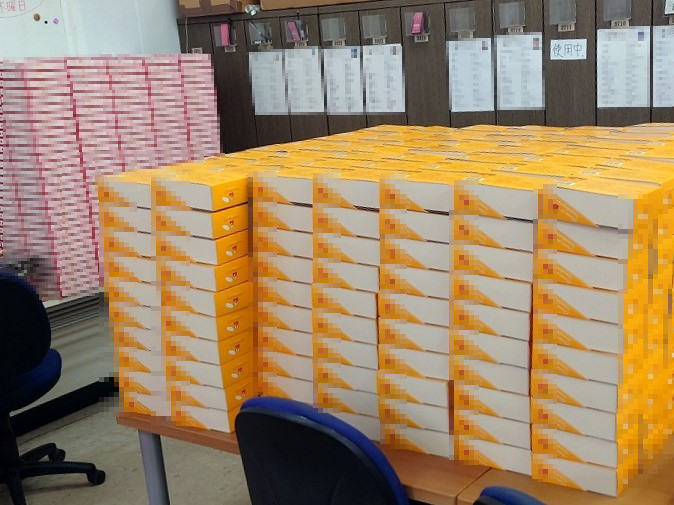 今日のタスカルはまず、組み立てた箱を大きな箱にまとめる作業をしています。
