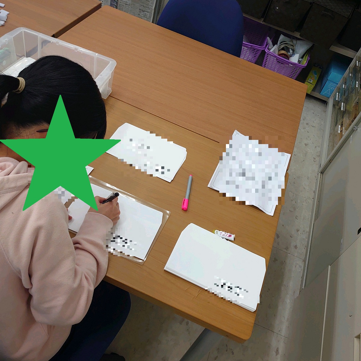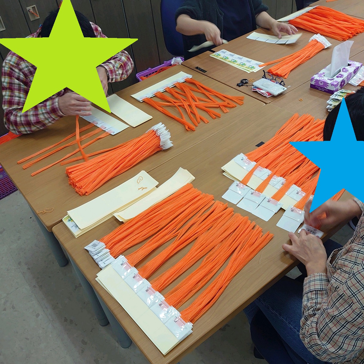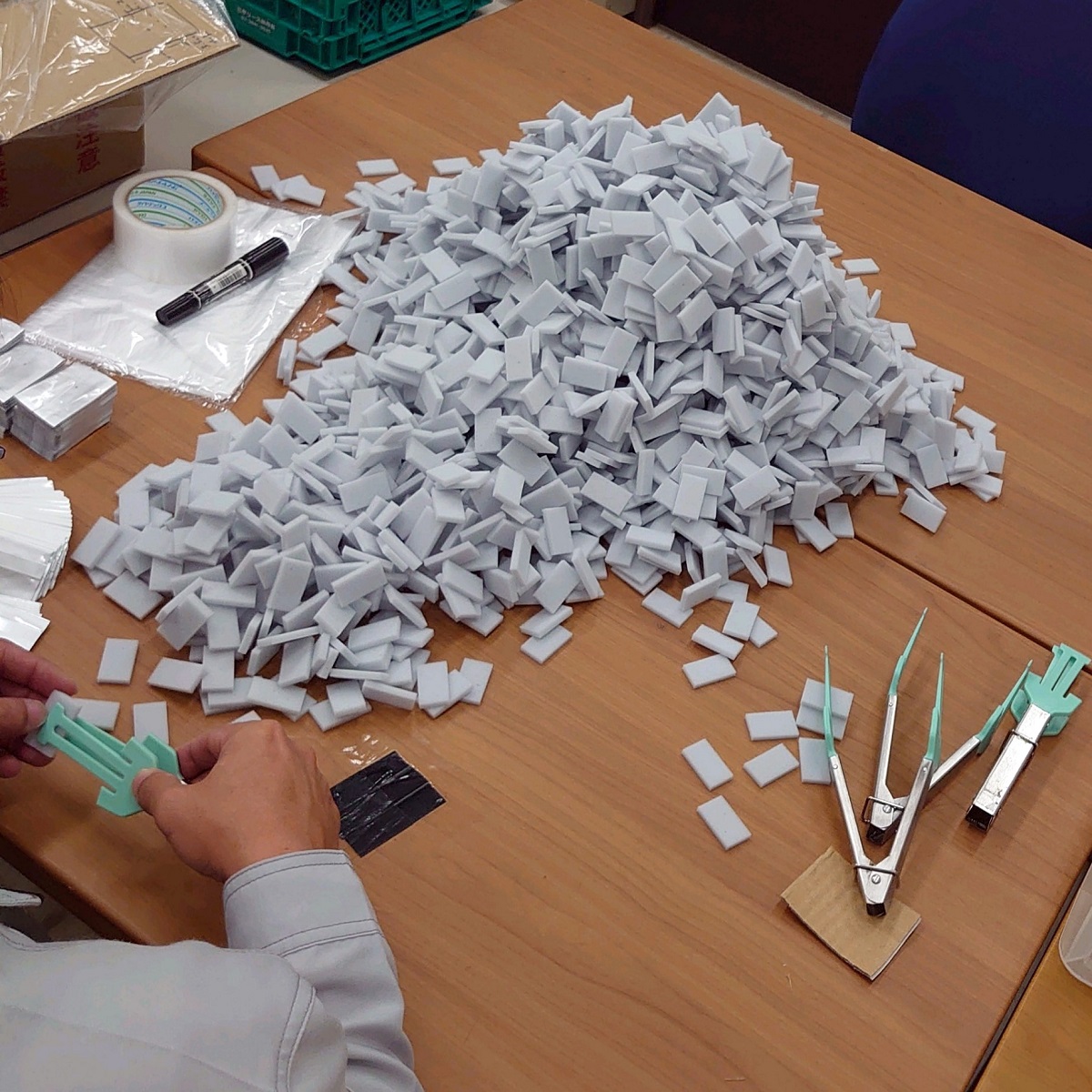 今週は、先週から作業をしている玉ねぎのシール貼り、今日から始まったDMの宛名書き、香りサンプルのスポンジ詰めの作業をしています。