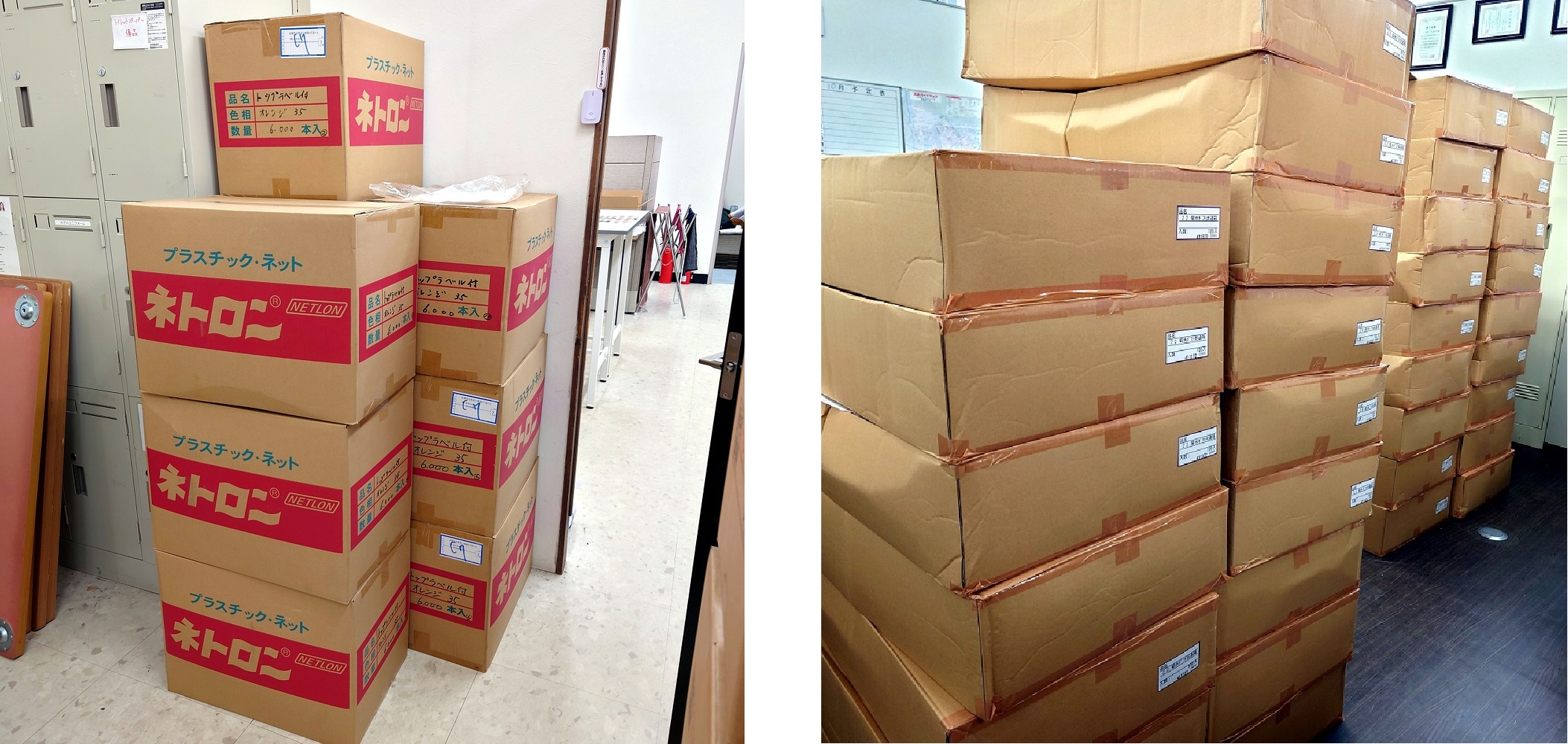 特に写真右の箱は、タスカルの男性スタッフでも1人で持ちたくないほど重いそう。