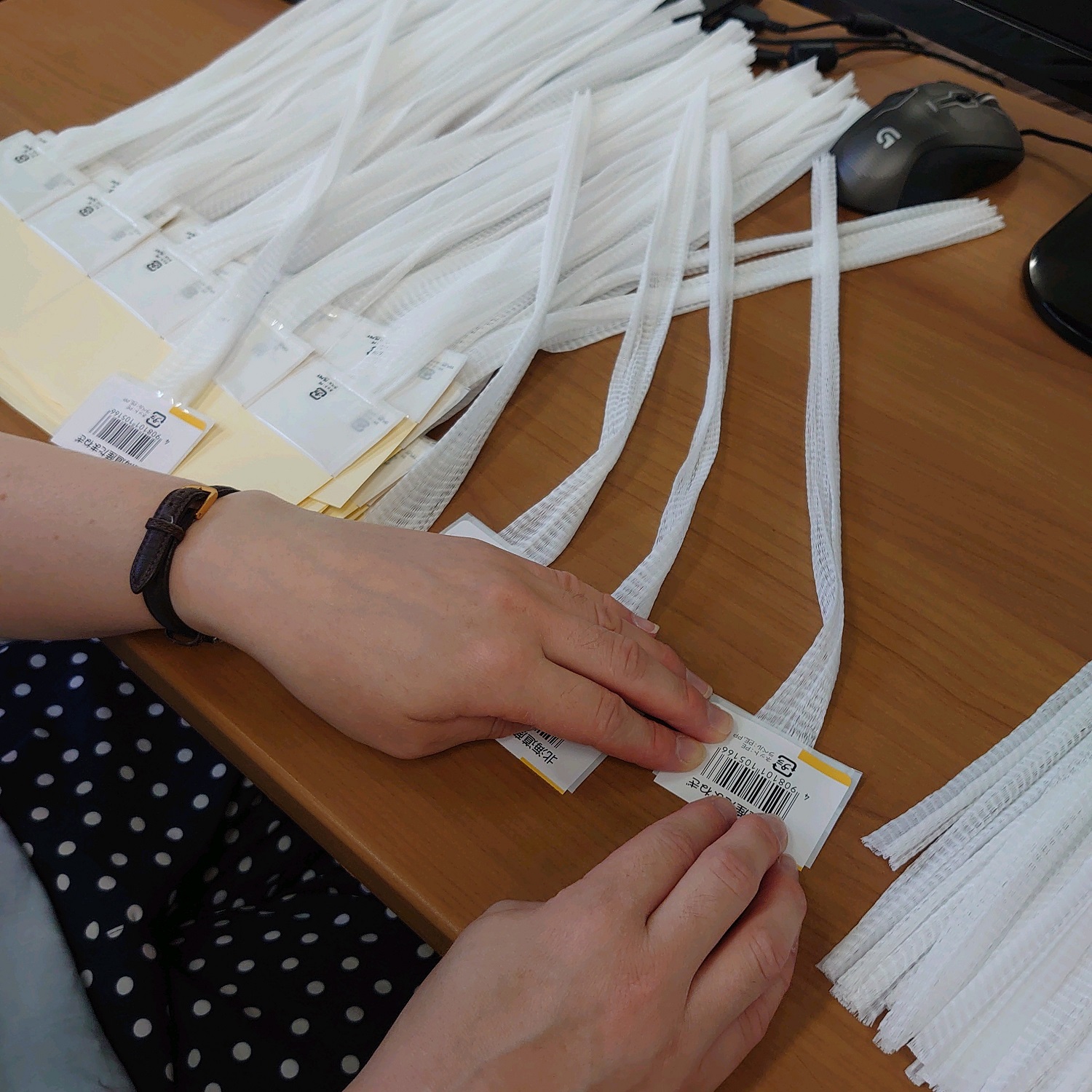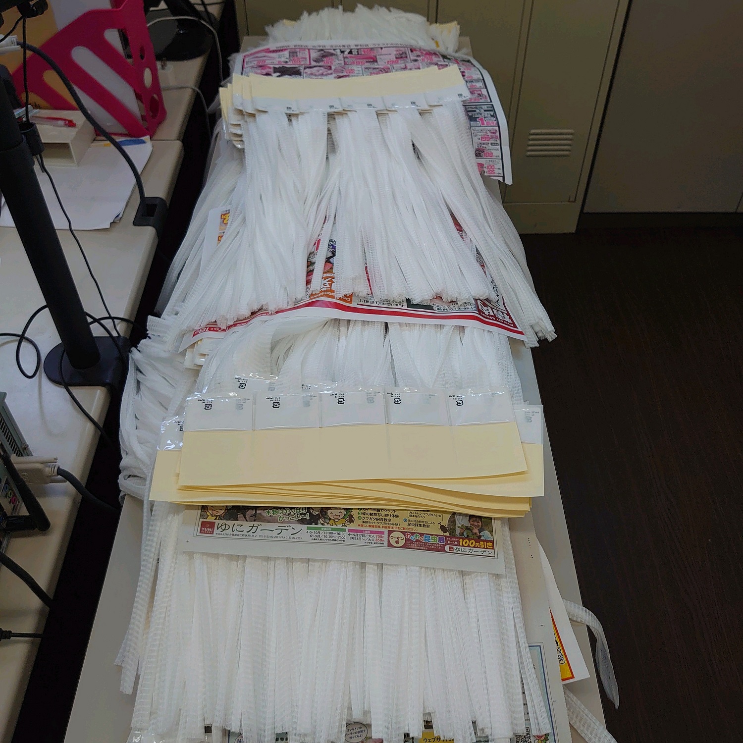 とても暑いですが、玉ねぎネットのシール貼りに精を出しています。