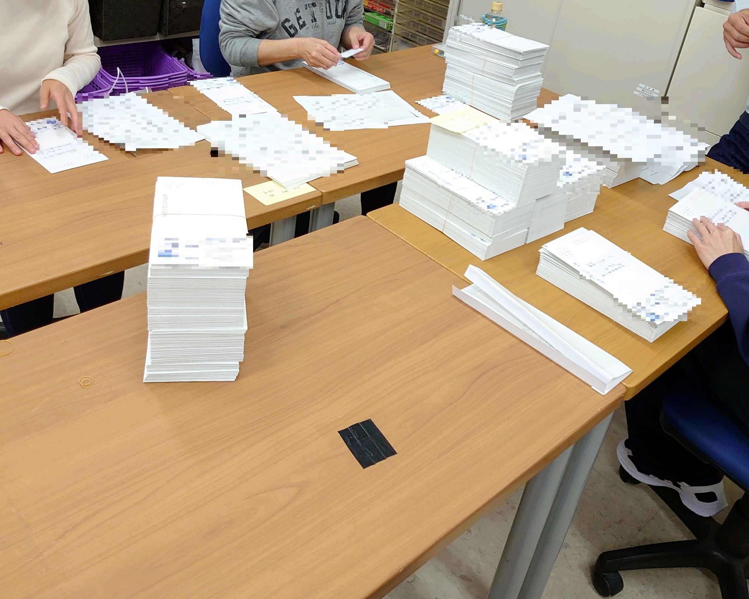 今日は主に、封筒に宛名のシールを貼る作業をしています。