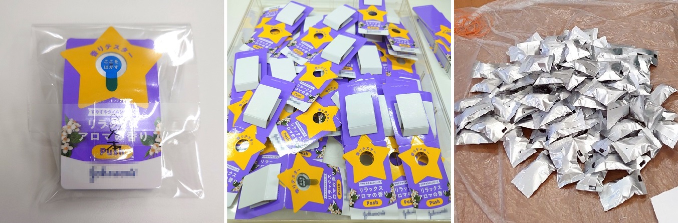 私は袋閉じは苦手ですが、香りが入った袋を取り付けるのは、タスカルに入った当初から好きで、得意な作業だと思っています。