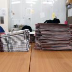 今日は仕切り折り、ちらしの丁合、宛名書き