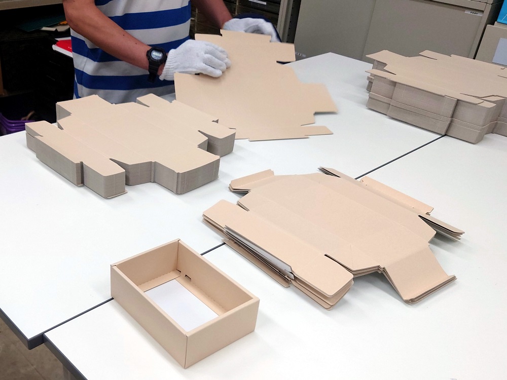 今日のタスカルは、宛名書き、箱折り、香りサンプルを台紙に付ける作業、3つに作業が分担されています。